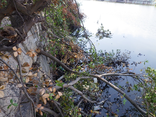 河川側からはカヤックを使用し、樹木へロープを固縛して地上から引き上げました。